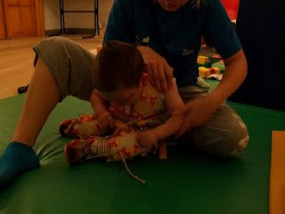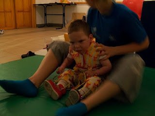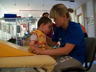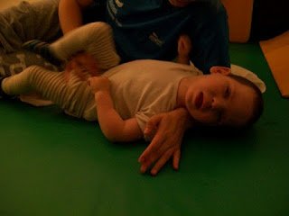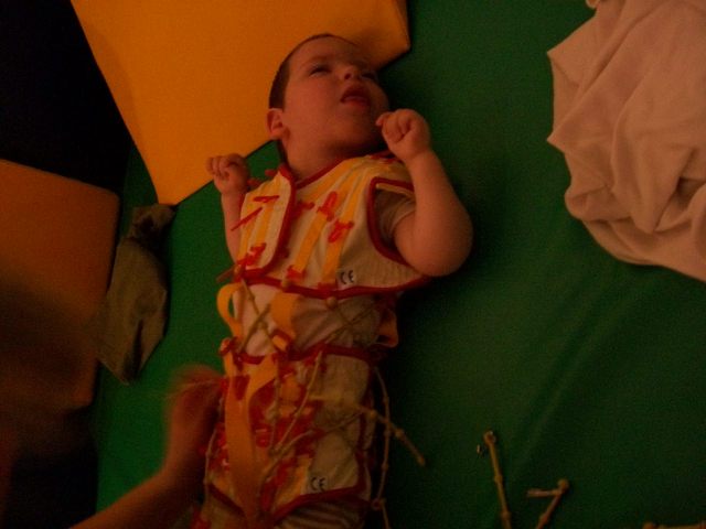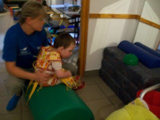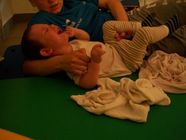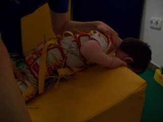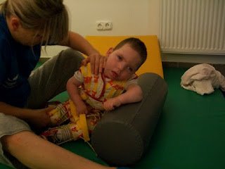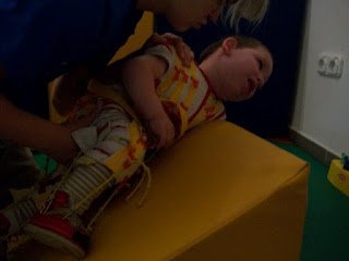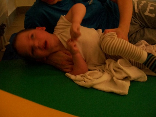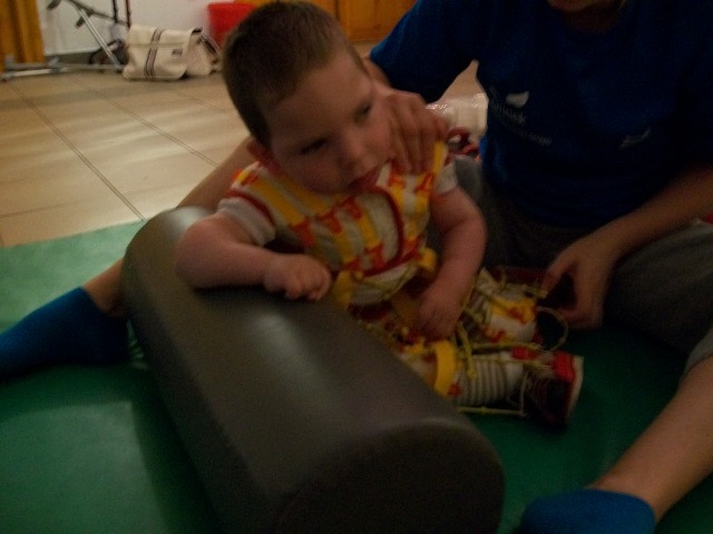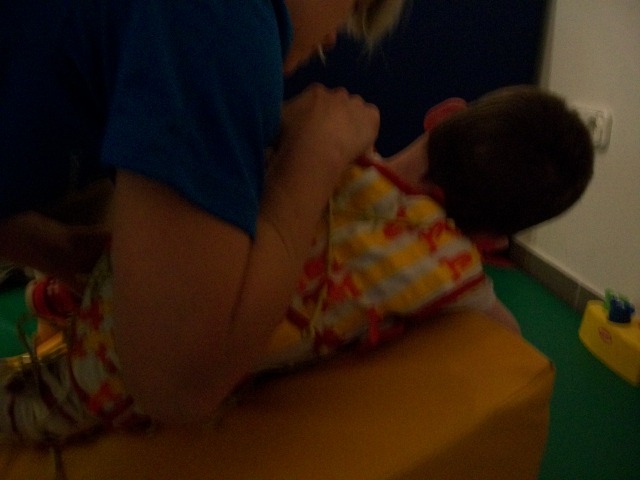 Ma megvolt a 3. napunk is. Háááát, igen fárasztó. Ügyes, a terapeuta szerint is napról napra ügyesebb, és egyre kevesebb a kóros feszítése. Baromi fárasztó neki, nekem is az lenne mert ez a 2 óra igen kemény torna, végig dolgoznia kell, nincs cirógatás közben. A tornász nagyon kedves, próbálja nyugtatni énekléssel.