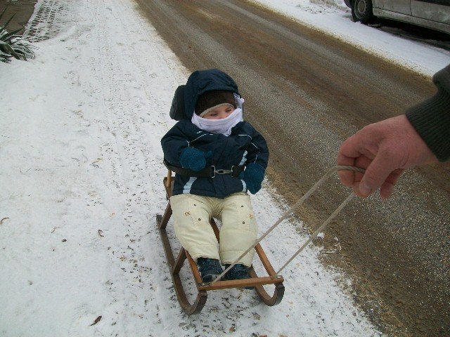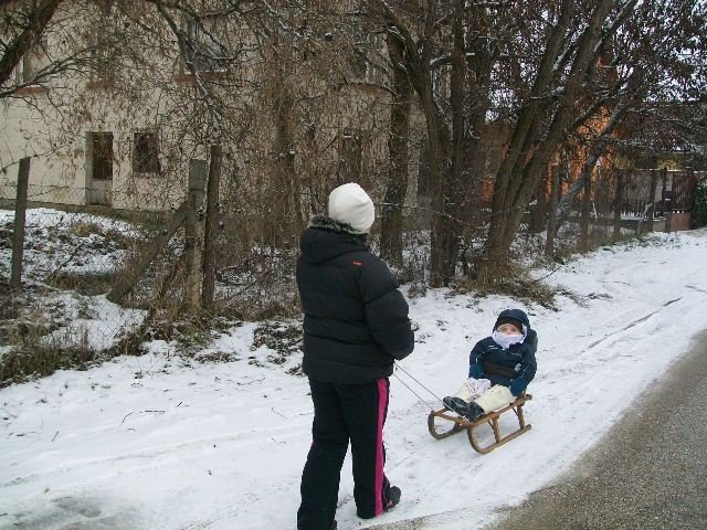 Őszintén megmondva nem igazán élvezi a szánkózást, vagyis inkább a hideget nem bírja (anyja fia) 🙂 de szánkózni kell 😀