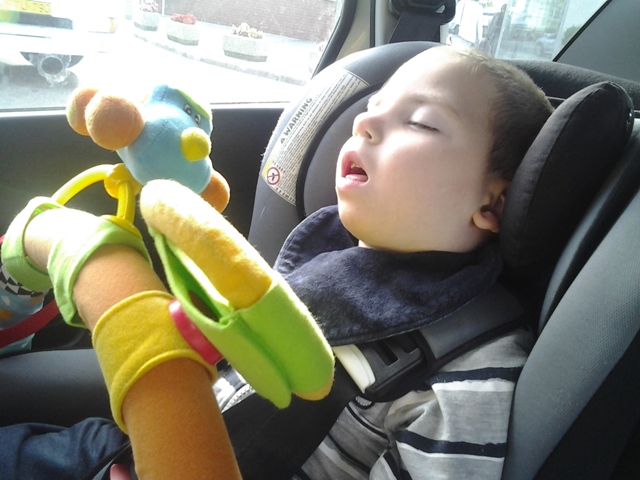 | Kis alvás az autóban. |